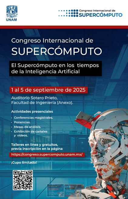La Dirección General de Cómputo y de Tecnologías de Información y Comunicación (DGCTIC) de la Universidad Nacional Autónoma de México (UNAM), invita a participar en el Congreso Internacional de Supercómputo. El Supercómputo en los tiempos de la Inteligencia Artificial, el cual busca fomentar la colaboración e intercambio de conocimientos en el ámbito del supercómputo, promoviendo su uso en la investigación y su impacto social, así como la capacitación de académicos y estudiantes para participar en proyectos de cómputo científico.