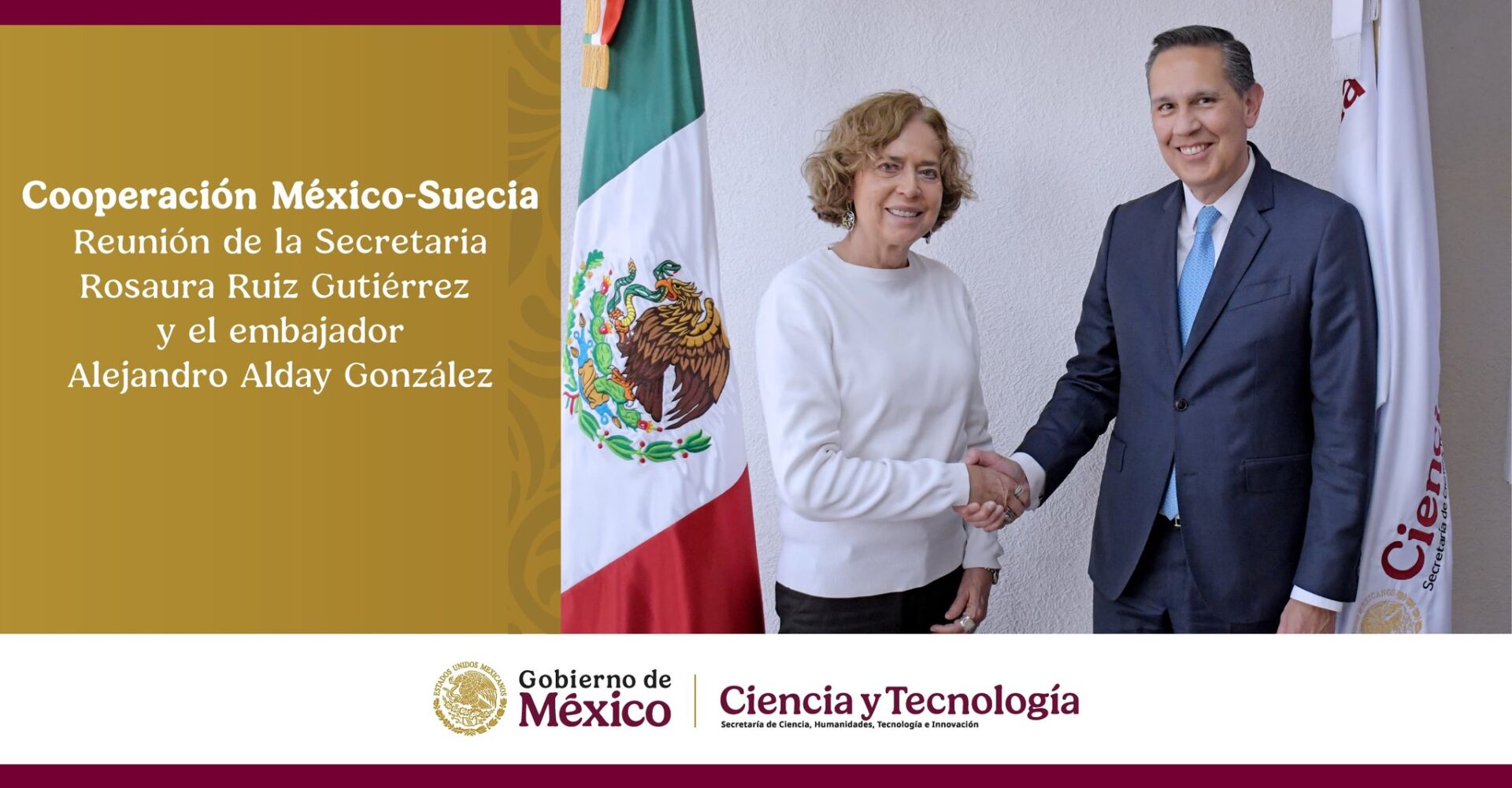 La titular de la Secretaría de Ciencia, Humanidades, Tecnología e Innovación (Secihti), Rosaura Ruiz Gutiérrez, sostuvo una reunión de trabajo con el embajador de México en Suecia, Letonia y Lituania, Excmo. Sr. Emb. Alejandro Alday González, para dialogar sobre el modelo sueco de innovación que articula universidades, empresas privadas y al Estado, que le han permitido ser una potencia tecnológica a nivel global.